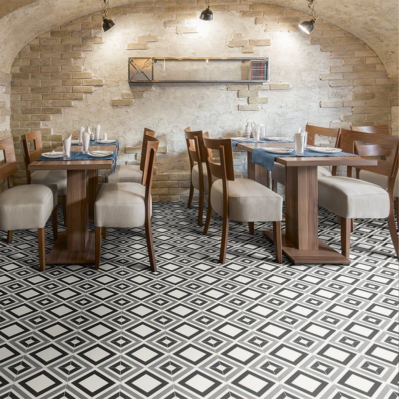 Die geometrischen Dekore stehen im direkten Dialog mit aktuellen Trends. Ideal für Außen- und Innenbereiche. Einzigartige Größe 20x20.