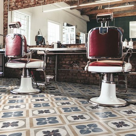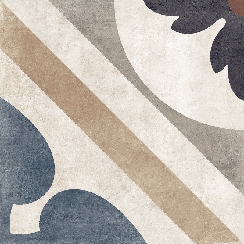 Die Feinsteinzeug-Kollektion London von Faetano entdeckt den Charme der traditionellen Zementfliesen wieder, die mit floralen Mustern und geometrischen Motiven verziert sind.