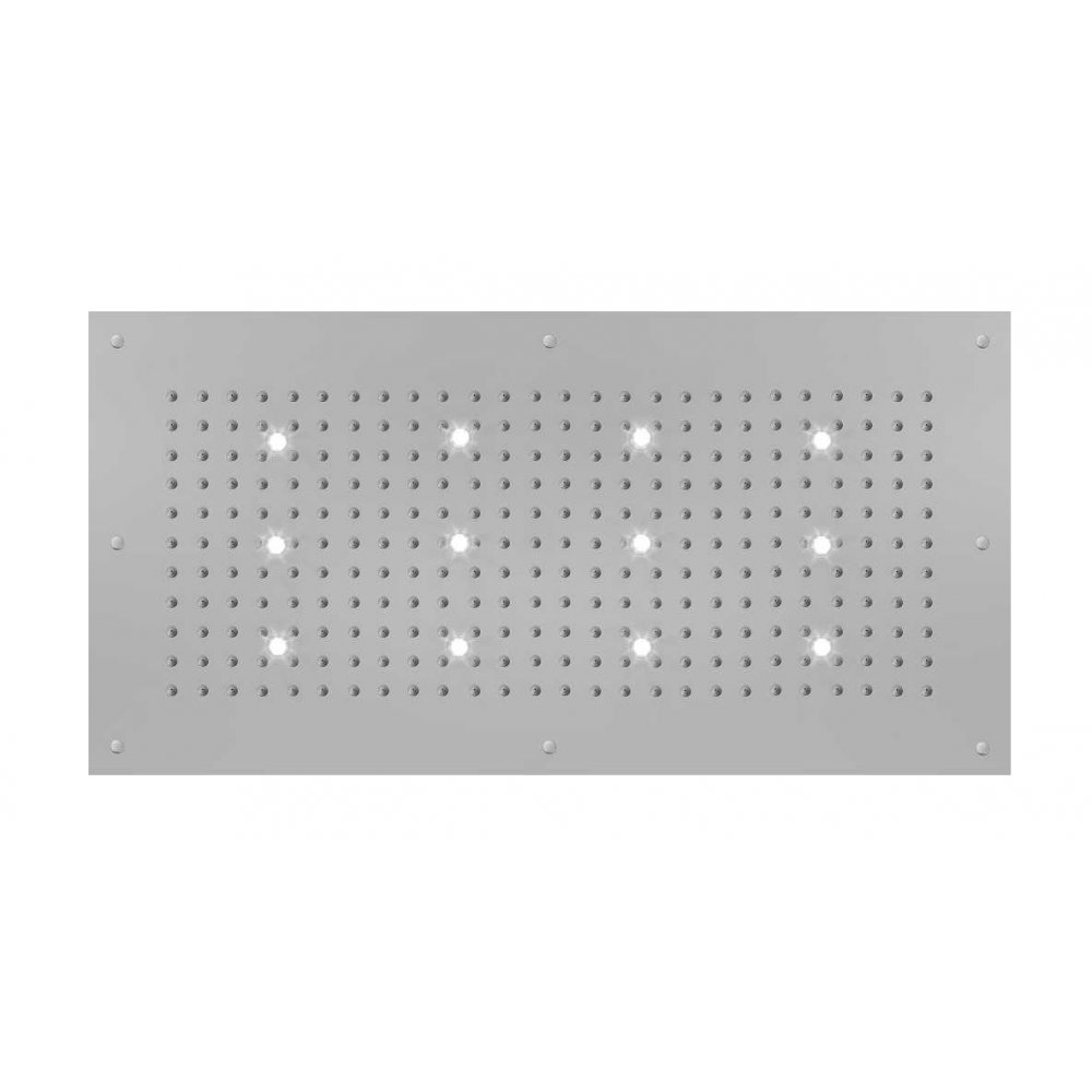 Kopfbrausen Dream XL mit LED Lichten, Niederspannungstrafo, Steuertastenfeld und Versorgungsschlauch. Montage an der Zwischendecke. LED Lichtung 1 Farbauswahl. Regenstrahl.