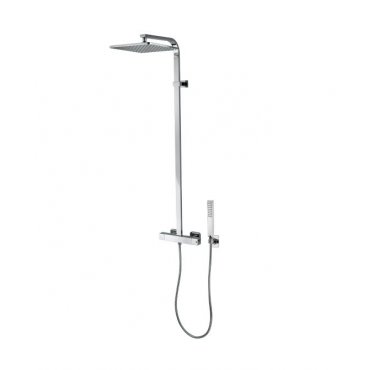 Duschsäule aus Messing 35 x 15 mm Abschnitt – COSMO Kopfbrause – AGUA-LIFE Handbrause – Brausehalter – 150 cm Doppelwicklung Schlauch aus Messing mit ½” i.G./i.G. Verbindungen – Thermostat-Brausebatterie mit integriertem Umsteller.