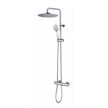 Duschsäule aus Messing Ø 20 mm Abschnitt – COSMO Kopfbrause – MIXA FIT AIR 3-Wasserstrahlen Handbrause – schwenkbarer Brausehalter – 150 cm Doppelwicklung Schlauch aus Messing mit ½” i.G./i.G. Verbindungen – Thermostat-Brausebatterie mit integriertem Umsteller.