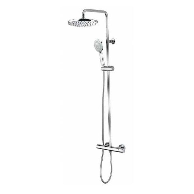 Duschsäule aus Messing Ø 20 mm Abschnitt – OKI Kopfbrause – MIXA FIT AIR 3-Wasserstrahlen Handbrause – schwenkbarer Brausehalter – 150 cm Doppelwicklung Schlauch aus Messing mit ½” i.G./i.G. Verbindungen – Einhebel-Brausebatterie mit integriertem Umsteller.