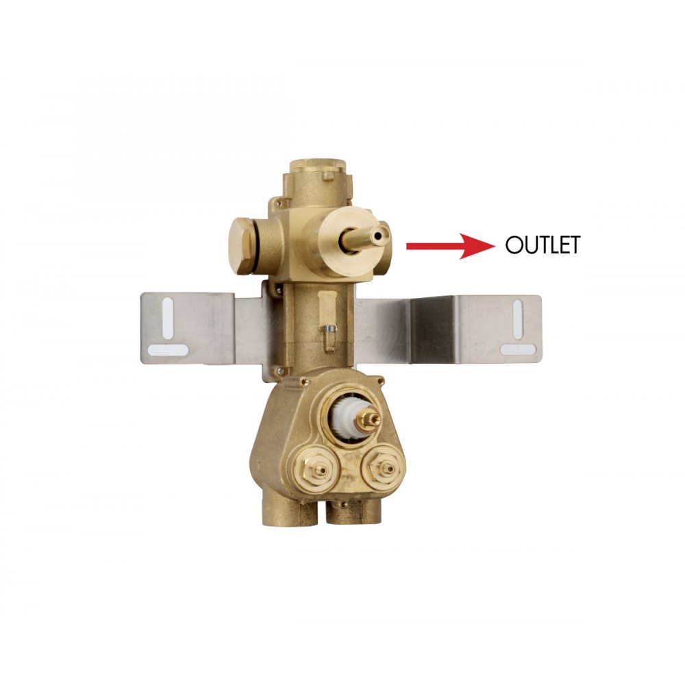 Concealed Thermostatic shower valve High Flow, 3/4” connections, Vertical /horizontal setting up with 1 outlet (1 stop valve), for single or individual back plate.