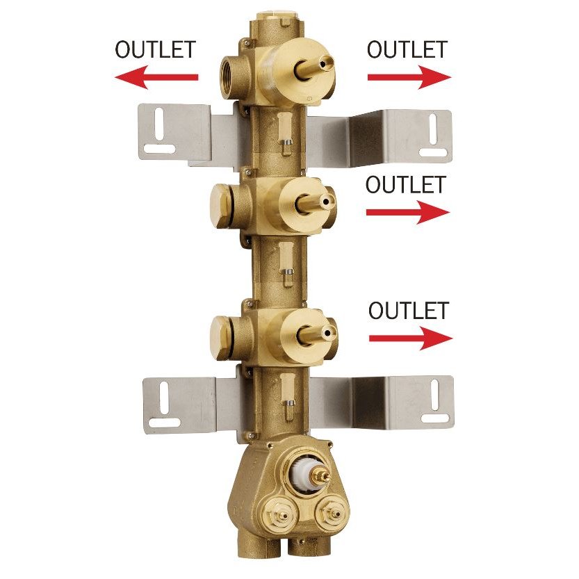Unterputz-Einbaukörper für ThermostatMischbatterie mit hohem Durchfluss - 3/4" Anschlüsse - vertikaler/horizontaler Einbau - 4 Ausgängen (1 x 2-Wege Umsteller + 2 Stoppventile)