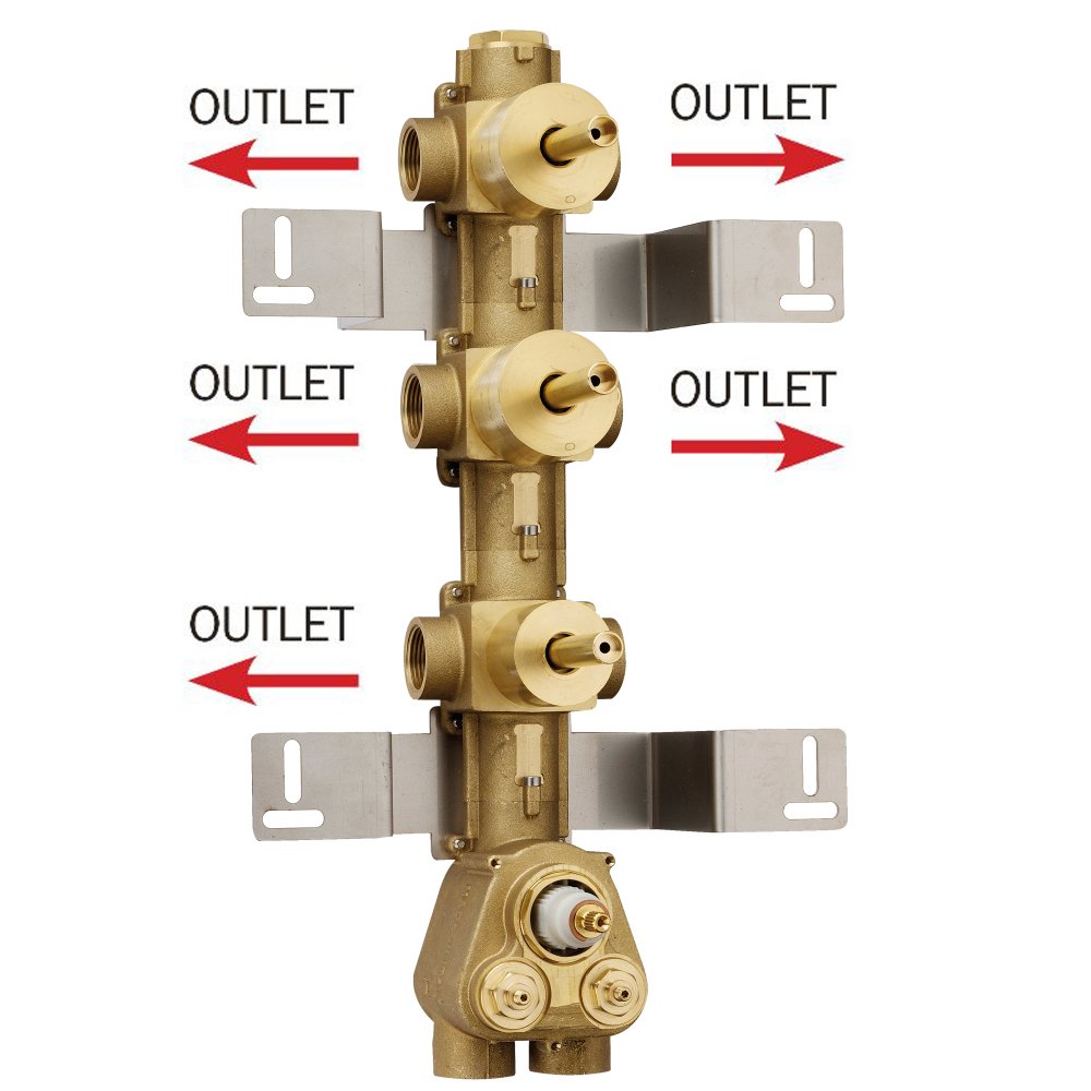 Unterputz-Einbaukörper für ThermostatMischbatterie mit hohem Durchfluss - 3/4" Anschlüsse - vertikaler/horizontaler Einbau - 5 Ausgängen (2 x 2-Wege Umsteller + 1 Stoppventil)