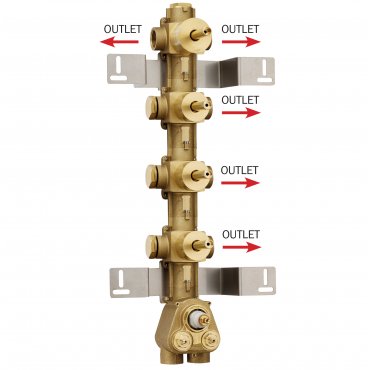 Unterputz-Einbaukörper für ThermostatMischbatterie mit hohem Durchfluss - 3/4" Anschlüsse - vertikaler/horizontaler Einbau - 5 Ausgängen (1 x 2-Wege Umsteller + 3 Stoppventile)
