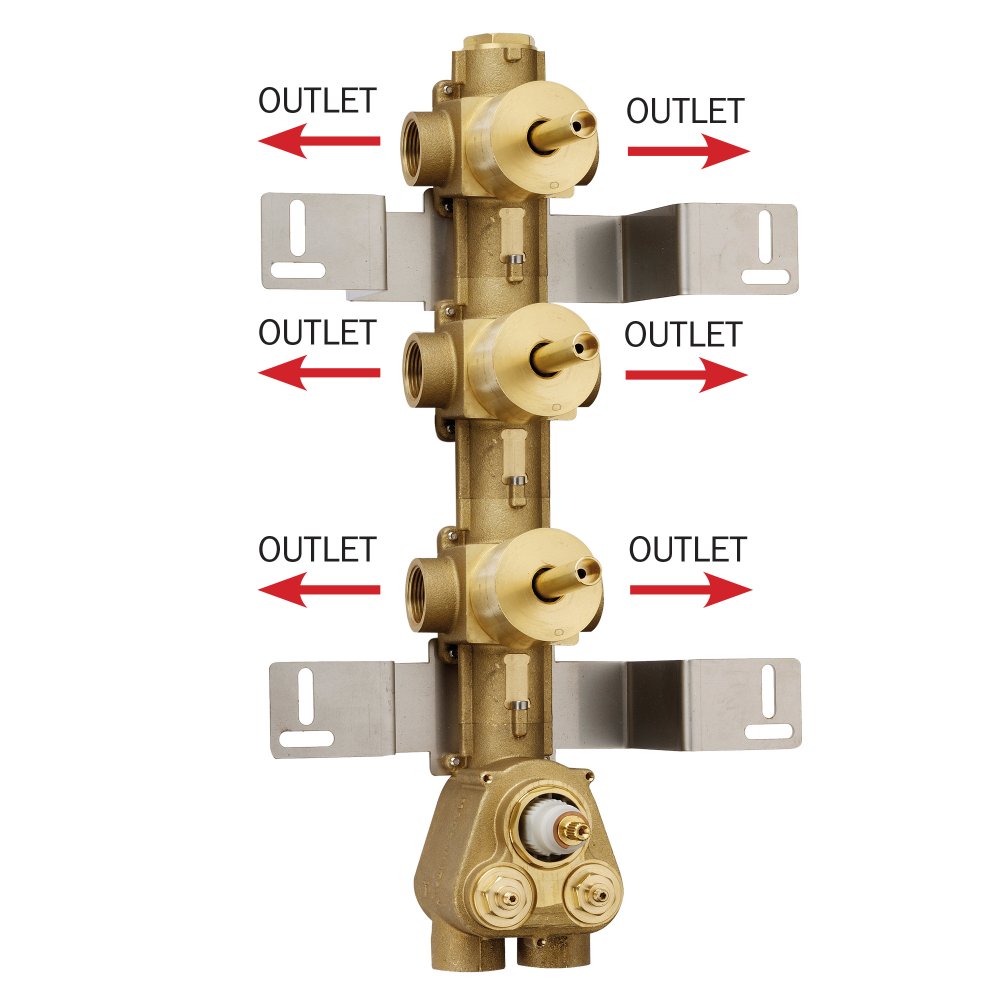 Unterputz-Einbaukörper für ThermostatMischbatterie mit hohem Durchfluss - 3/4" Anschlüsse - vertikaler/horizontaler Einbau - 6 Ausgängen (3 x 2-Wege Umsteller)