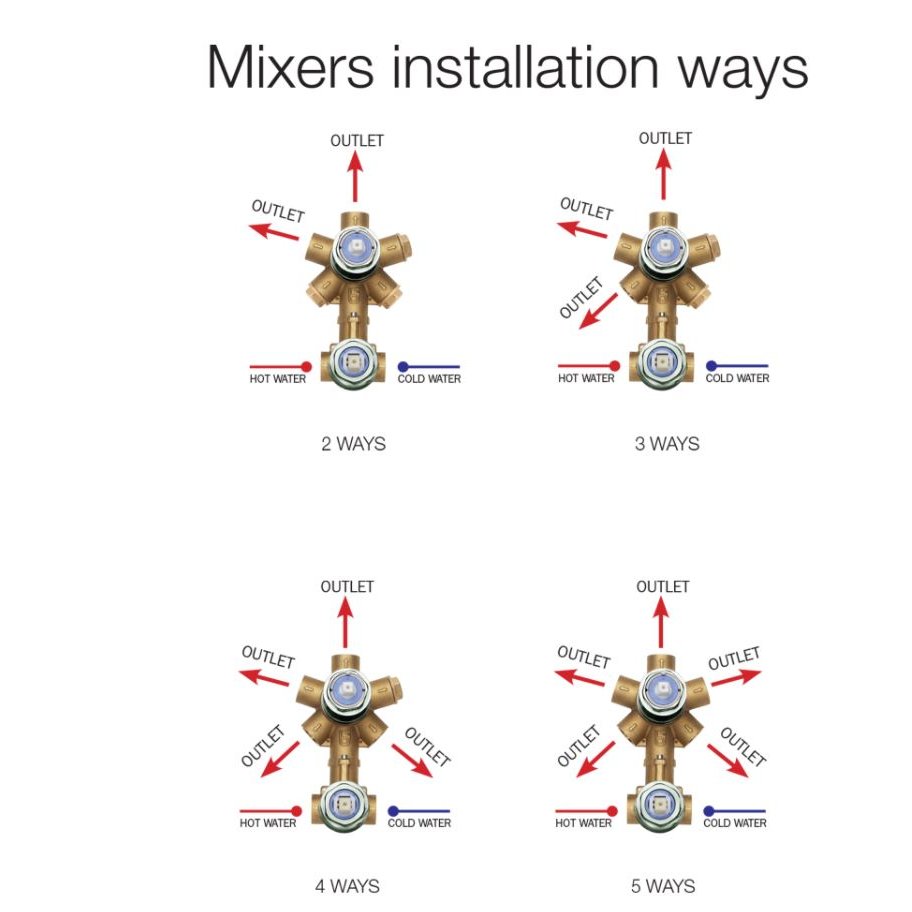 BOSSINI CUBE EINHEBELLBATTERIE FÜR AUFPUTZ MIT UMSTELLER UND 2-5 AUSGANGE