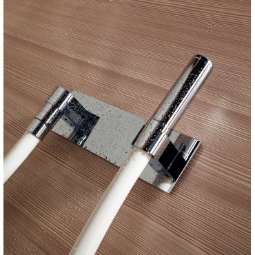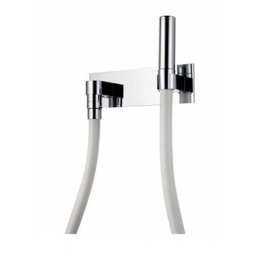 Weiß Brauseschalauch mit Brausehalter und Wandanschlussbogen.