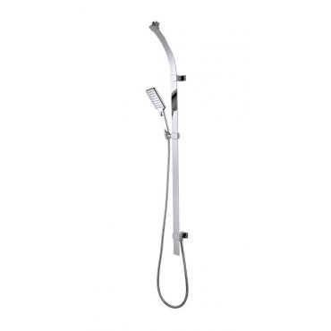 Set gebogene Brausestange FLAT cm 120 - obener Wandhalter mit Schlauchanschluss + verstellbarer unterer Wandhalter - AGUA-LIFE 120 x 80 mm Handbrause - Doppelwicklung Schlauch aus Messing cm 150.