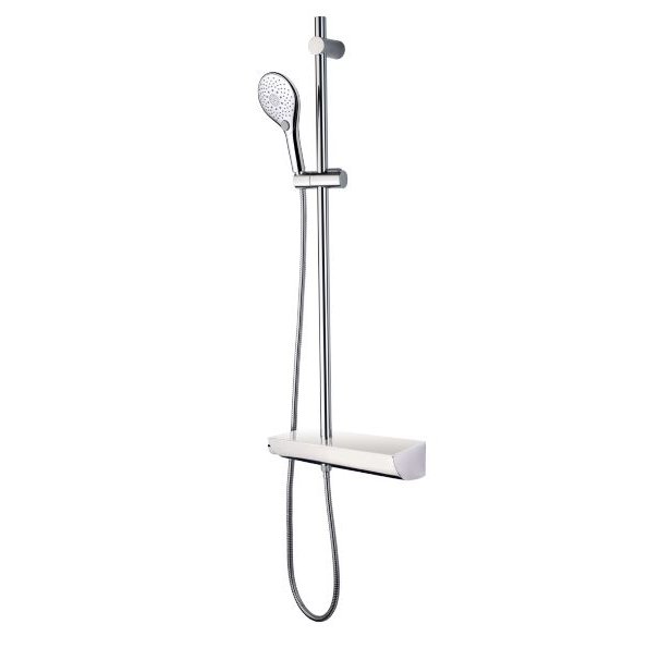 Für Duschen bietet Bossini auch Lösungen wie verstellbare, wandmontierte Gleitschienen-Sets an.
