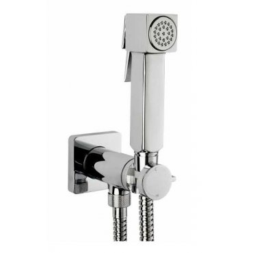 BOSSINI CUBE BIDET-HANDBRAUSE MIT WANDANSCHLUSSBOGEN UND SCHLAUCH VERCHROMT