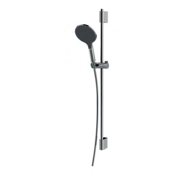 Set Brausestange 90 cm mit oberem verstellbarem Wandhalter. Max. Achsabstand 82 cm. Unterer Wandhalter mit integriertem Wasseranschluss. APICE Handbrause ø 140 mm. CROMOLUX Brauseschlauch 150 cm.