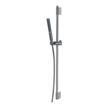 Set Brausestange 90 cm mit oberem verstellbarem Wandhalter. Max. Achsabstand 82 cm. Unterer Wandhalter mit integriertem Wasseranschluss. APICE SLIM Handbrause. CROMOLUX Brauseschlauch 150 cm.