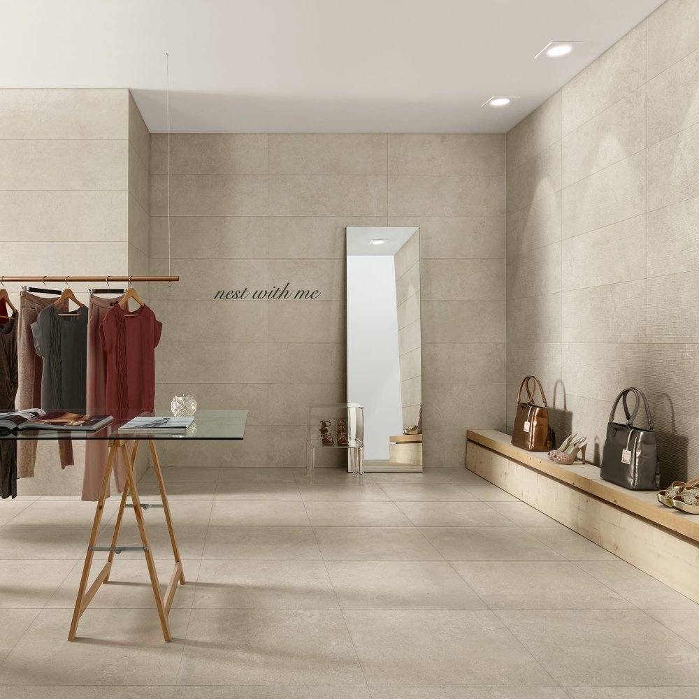 Love Ceramic Tiles präsentiert die Kollektion Nest aus Feinsteinzeug für Böden und aus weißem Einschichtmaterial für Wände.