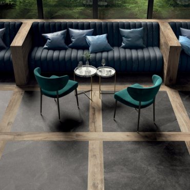 Die Linie ist in verschiedenen Formaten erhältlich, darunter 120x120, die dank der 20 mm starken Platte ein einzigartiges Design für Wohnräume im Innen- und Außenbereich bieten.