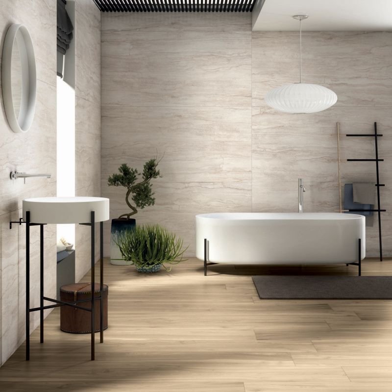 Die Natürlichkeit des Holzes kommt bei Essential zum Vorschein, der Feinsteinzeug-Kollektion von Ariana, mit natürlicher Oberfläche und in zwei Größen 26x200 und 20x120 Auto-Leveling. 4 Farben Almond, Beige, Oak und Grey, Farbtöne, die den Holzeffekt verstärken.