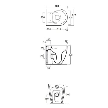 Alle Vasen der Baden-Baden-Serie sind randlos, ohne Rand, d. H. Ohne Innenrand. Technologie, die eine einfache Reinigung und weniger Wasserverschwendung ermöglicht. Der Wandablauf kann über eine technische Kurve in verschiedenen Größen in den Boden umgewandelt werden. Dank des Renovierungssystems kann die Toilette auf jedem Systemtyp installiert werden.