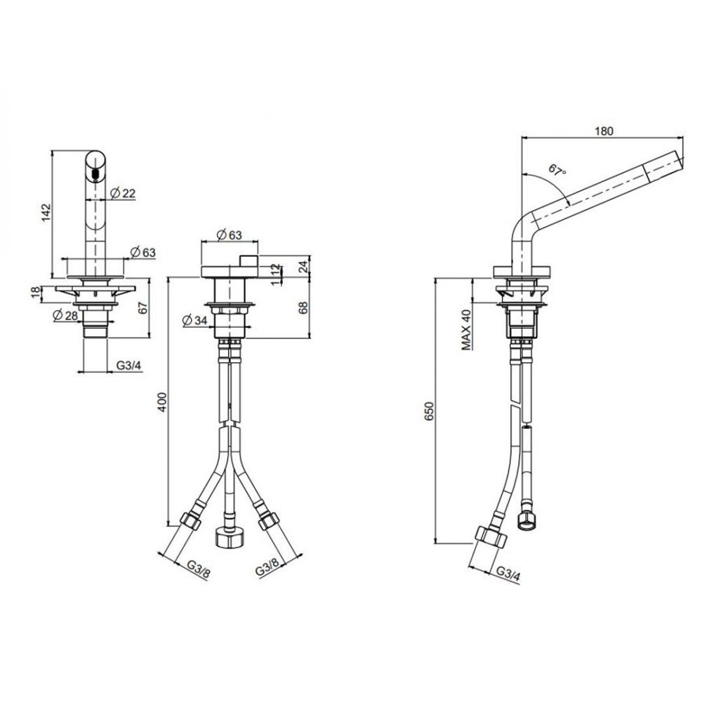 • IB RUBINETTERIE BRERA 2-LOCH-WASCHTISCHBATTERIE CHROM