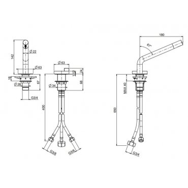 QUADRO DESIGN Q 2-LOCH-WASCHTISCHBATTERIE MIT SCHWENKBAREM AUSLAUF