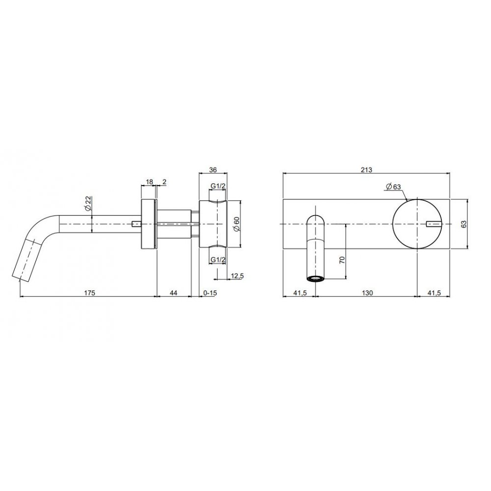 Wandhydromischer mit Auslauf.