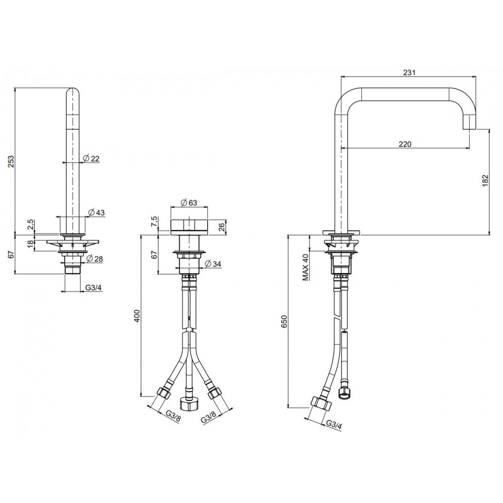 QUADRO DESIGN VALVOLA01 2-LOCH-WASCHTISCHBATTERIE MIT SCHWENKBAREM AUSLAUF