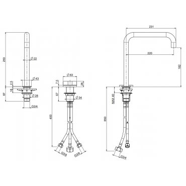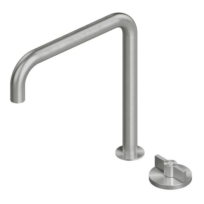 Ein industrieller Charme, der sich durch Ventile auszeichnet, die von typischen Hydraulik- und Gaskugelhähnen inspiriert sind. Wasserhähne aus Edelstahl mit gebürsteter Oberfläche. Valvola01 von Quadro garantiert eine überdurchschnittliche Wassereinsparung dank der vorinstallierten Perlatoren mit einem Durchfluss von 5 l/min, die durch Perlatoren mit höherem Durchfluss ersetzt werden können, wenn die Ausläufe zum Befüllen des Beckens verwendet werden.