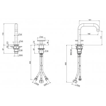 QUADRO DESIGN VALVOLA02 2-LOCH-WASCHTISCHBATTERIE MIT SCHWENKBAREM AUSLAUF
