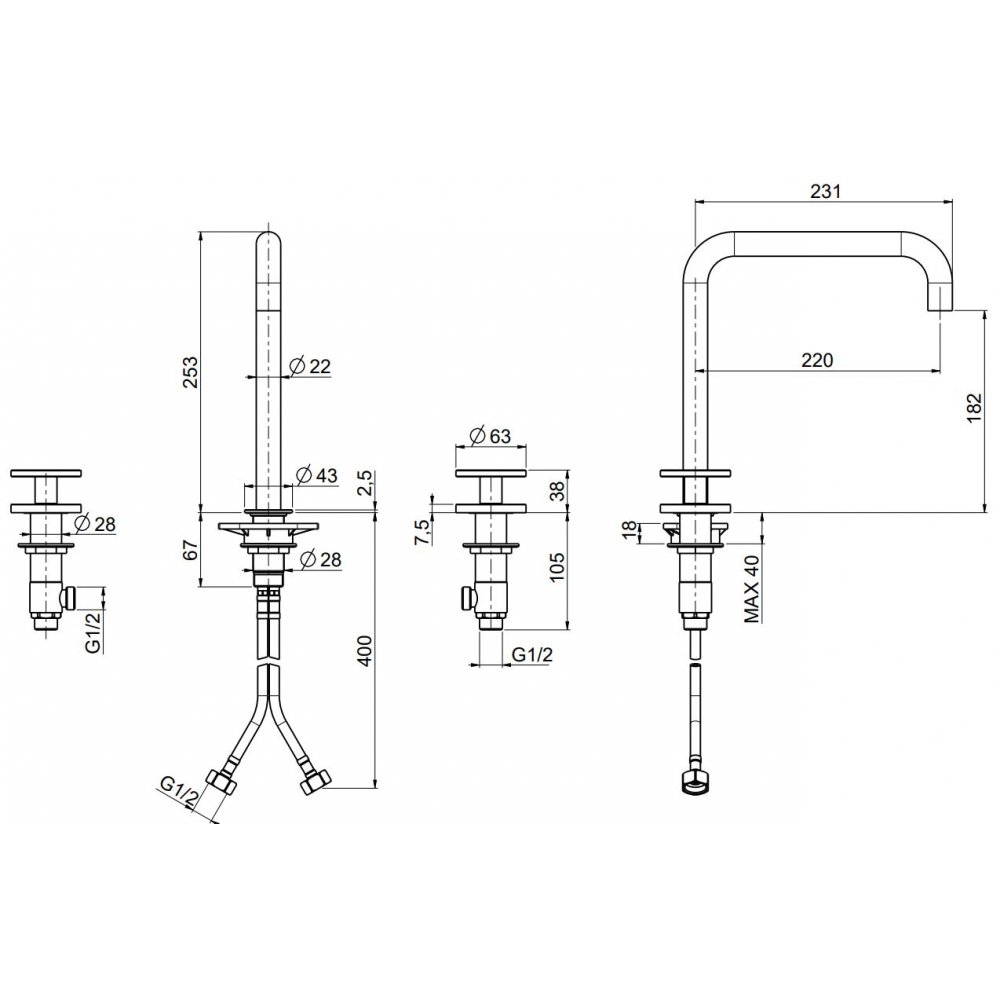 QUADRO DESIGN VALVOLA02 3-LOCH-WASCHTISCHBATTERIE MIT SCHWENKBAREM AUSLAUF