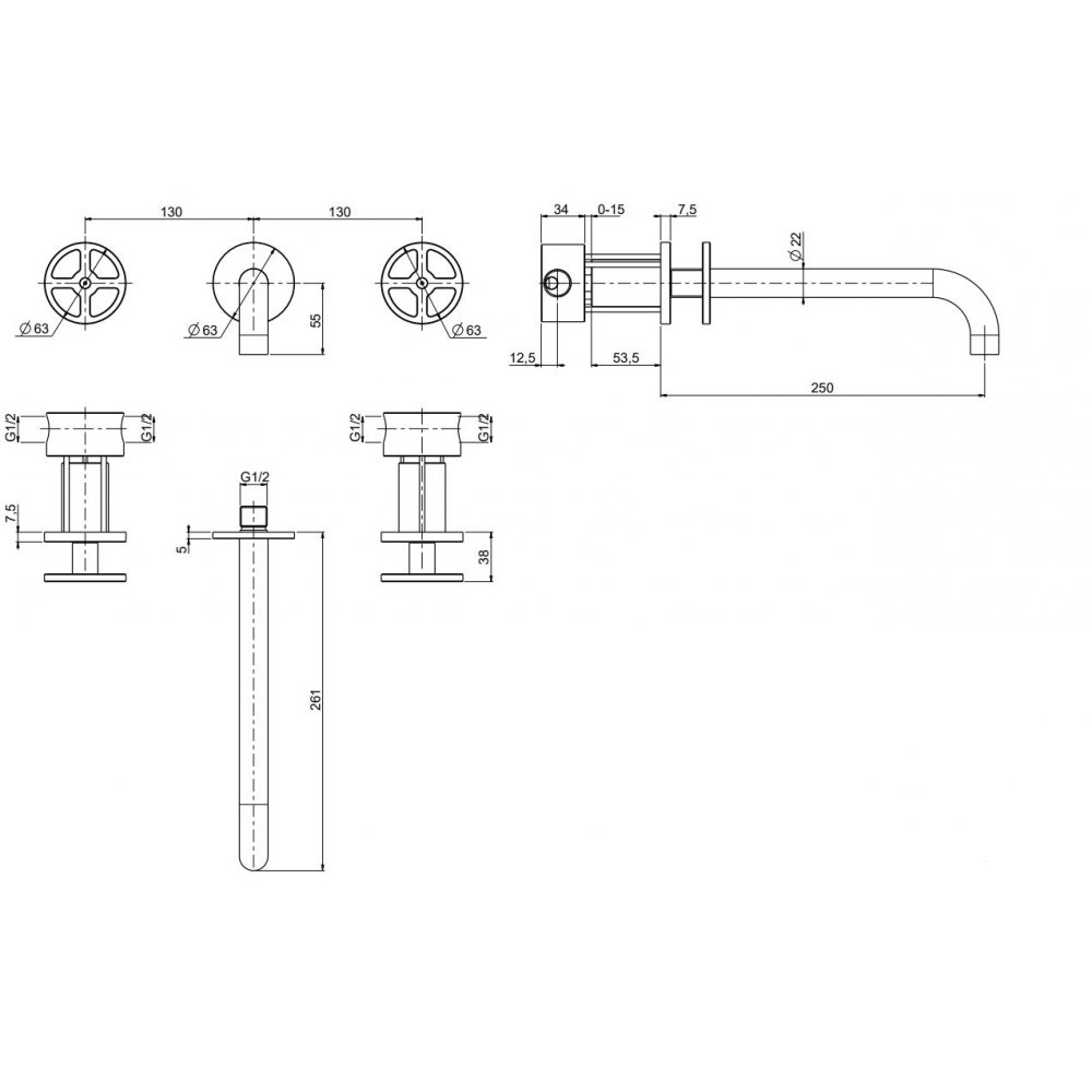 QUADRO DESIGN VALVOLA02 3-LOCH-WANDBATTERIE MIT 250 MM LAUF
