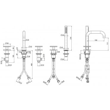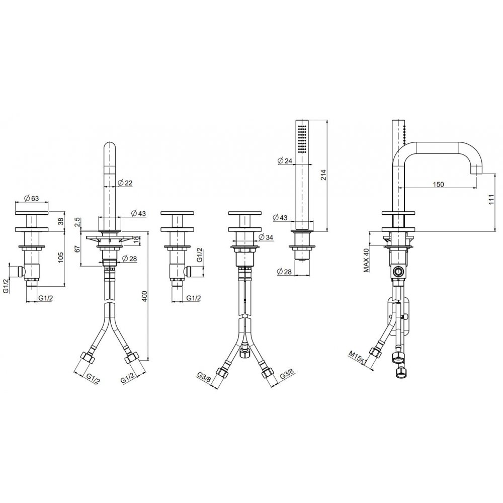 QUADRO DESIGN VALVOLA02 5-LOCH-BADEWANNENRANDBATTERIE MIT BRAUSEGARNITUR
