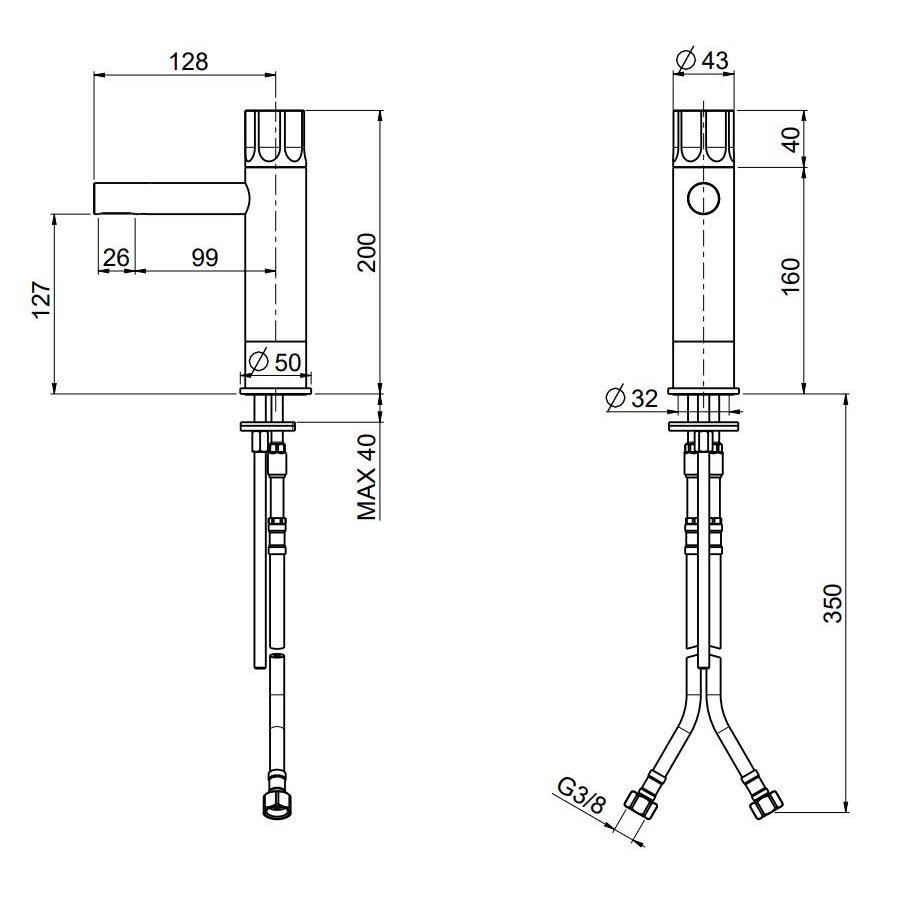 QUADRO DESIGN MODO WASCHTISCH-EINLOCHBATTERIE H 200 MM