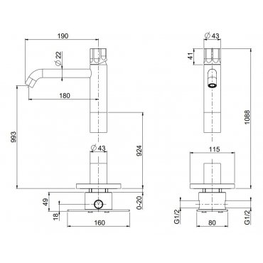 QUADRO DESIGN MODO FREE-STANDING WASCHTISCH-EINLOCHBATTERIE H 1087 MM