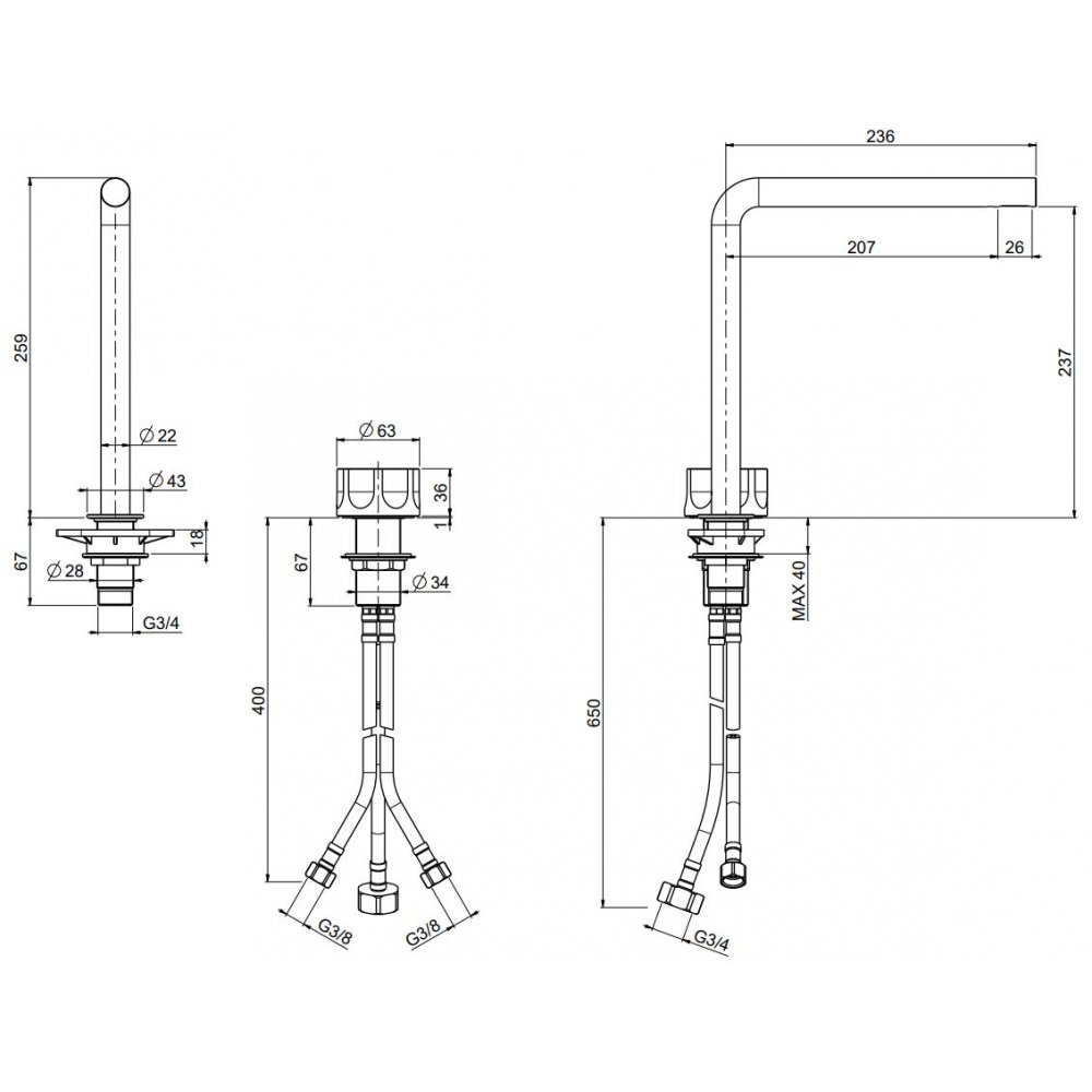 QUADRO DESIGN MODO 2-LOCH-WASCHTISCHBATTERIE H 259 MM