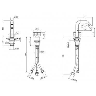 2-Loch-Hydrodruckmischer mit schwenkbarem Auslauf H. 133 mm.