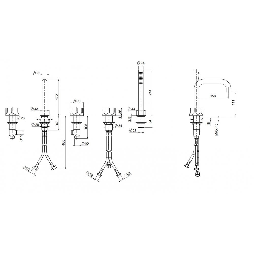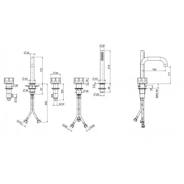 QUADRO DESIGN MODO 5-LOCH-BADEWANNENRANDBATTERIE MIT BRAUSEGARNITUR
