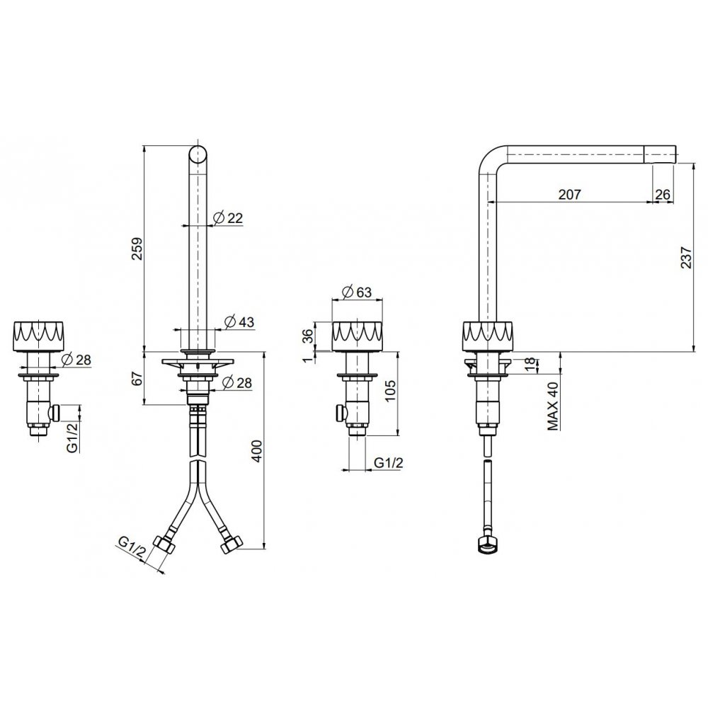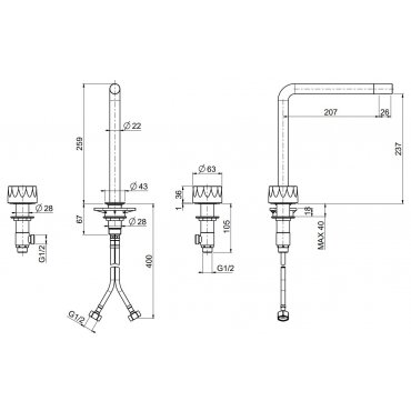QUADRO DESIGN HB 3-LOCH-WASCHTISCHBATTERIE H 259 MM
