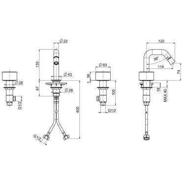 QUADRO DESIGN STEREO 3-LOCH-WASCHTISCHBATTERIE H 133 MM