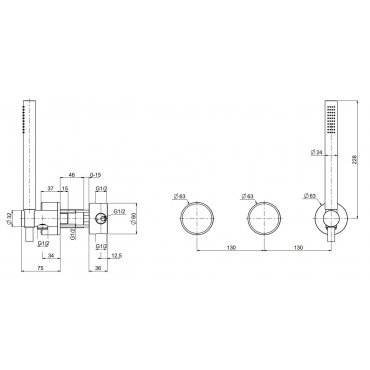 Wandarmaturen der Gruppe 2 mit Brausegarnitur.