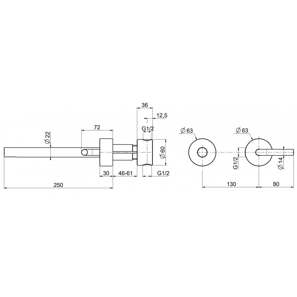 QUADRO DESIGN MODO 2-LOCH-WANDBATTERIE MIT 250 MM LAUF