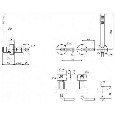 QUADRO DESIGN LEVO 2 BADEWANNEN-/BRAUSEBATTERIE MIT HANDBRAUSE
