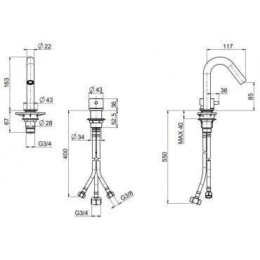 QUADRO DESIGN STEREO 2-LOCH-WASCHTISCHBATTERIE H 165 MM