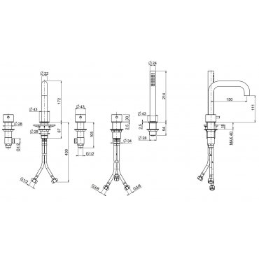 QUADRO DESIGN SOURCE 5-LOCH-BADEWANNENRANDBATTERIE MIT BRAUSEGARNITUR
