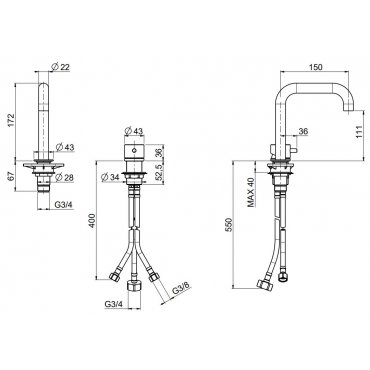 QUADRO DESIGN OTTAVO 2-LOCH-WASCHTISCHBATTERIE H 175 MM