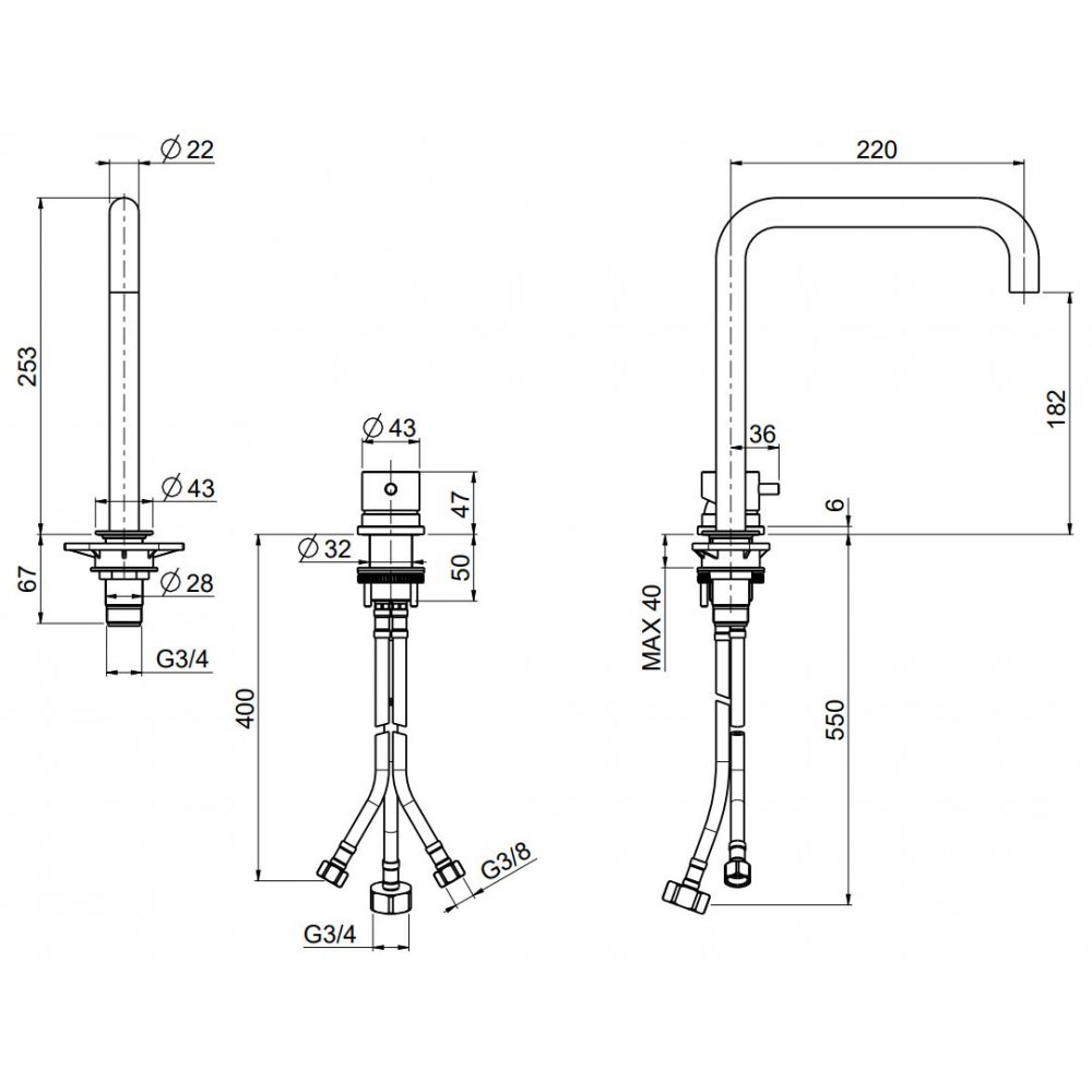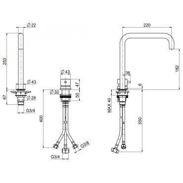 QUADRO DESIGN OTTAVO 2-LOCH-WASCHTISCHBATTERIE H 256 MM