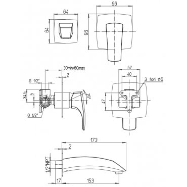 • GABOLI FRATELLI HEOS EINBAUWASCHBECKENMISCHER MIT WANDAUSGUSS