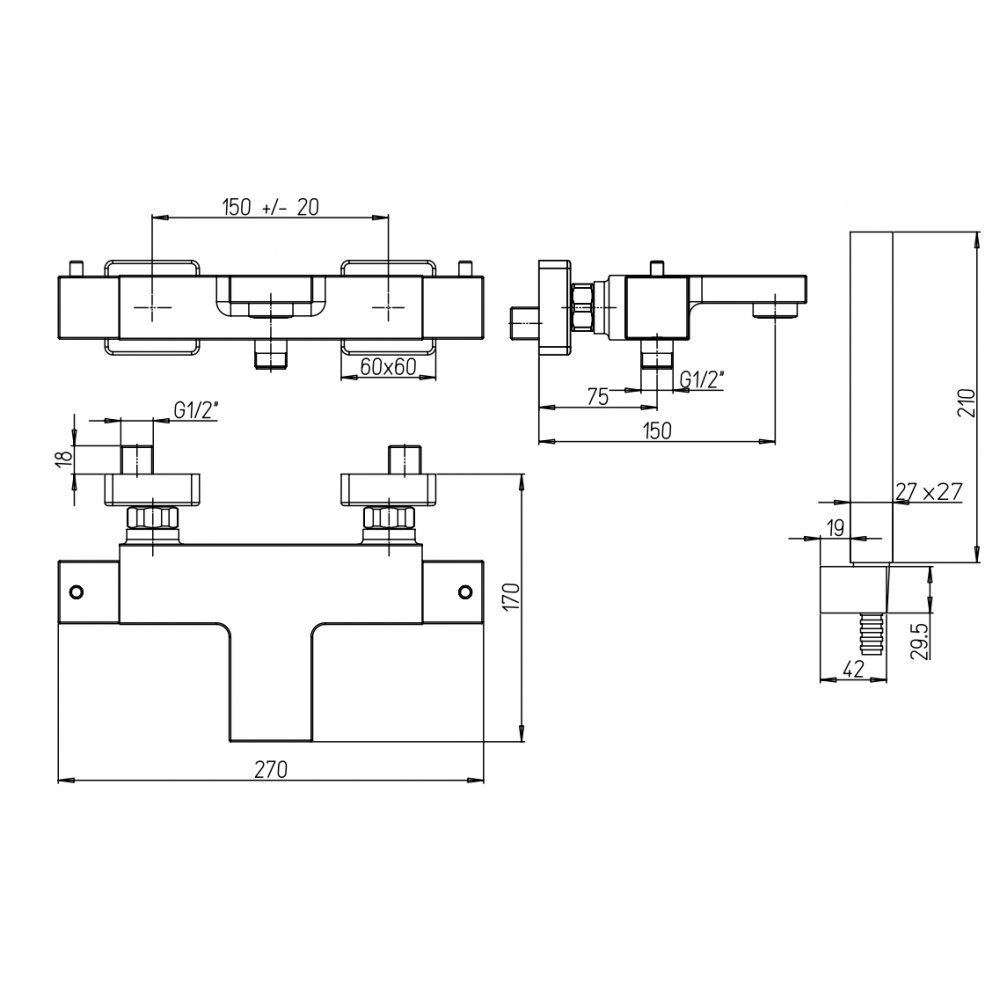 PAINI VENTI THERMOSTAT WANNEN-BATTERIE MIT BRAUSEGARNITUR