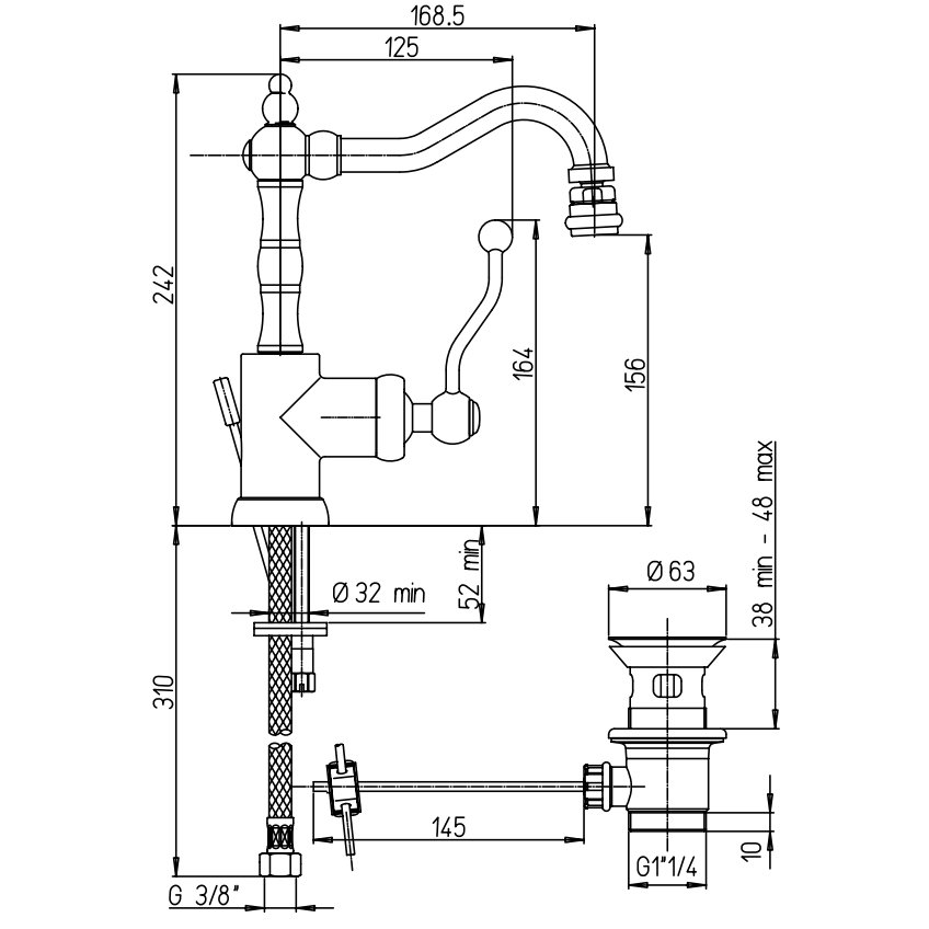 PAINI DUOMO BIDETMISCHER MIT SCHWENKBAREM AUSLAUF, AB- UND ÜBERLAUFGARNITUR