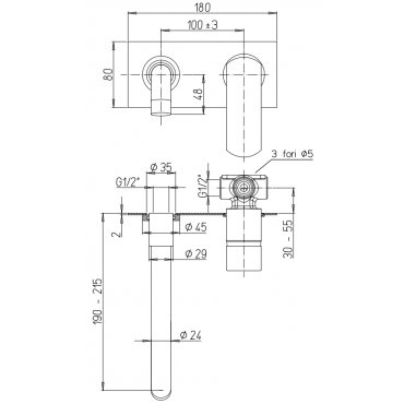 QUADRO DESIGN MODO 2-LOCH-WANDBATTERIE MIT 190 MM LAUF