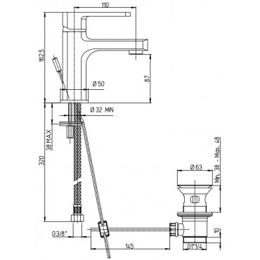 PAINI OVO WASCHTISCHMISCHER AB- UND ÜBERLAUFGARNITUR